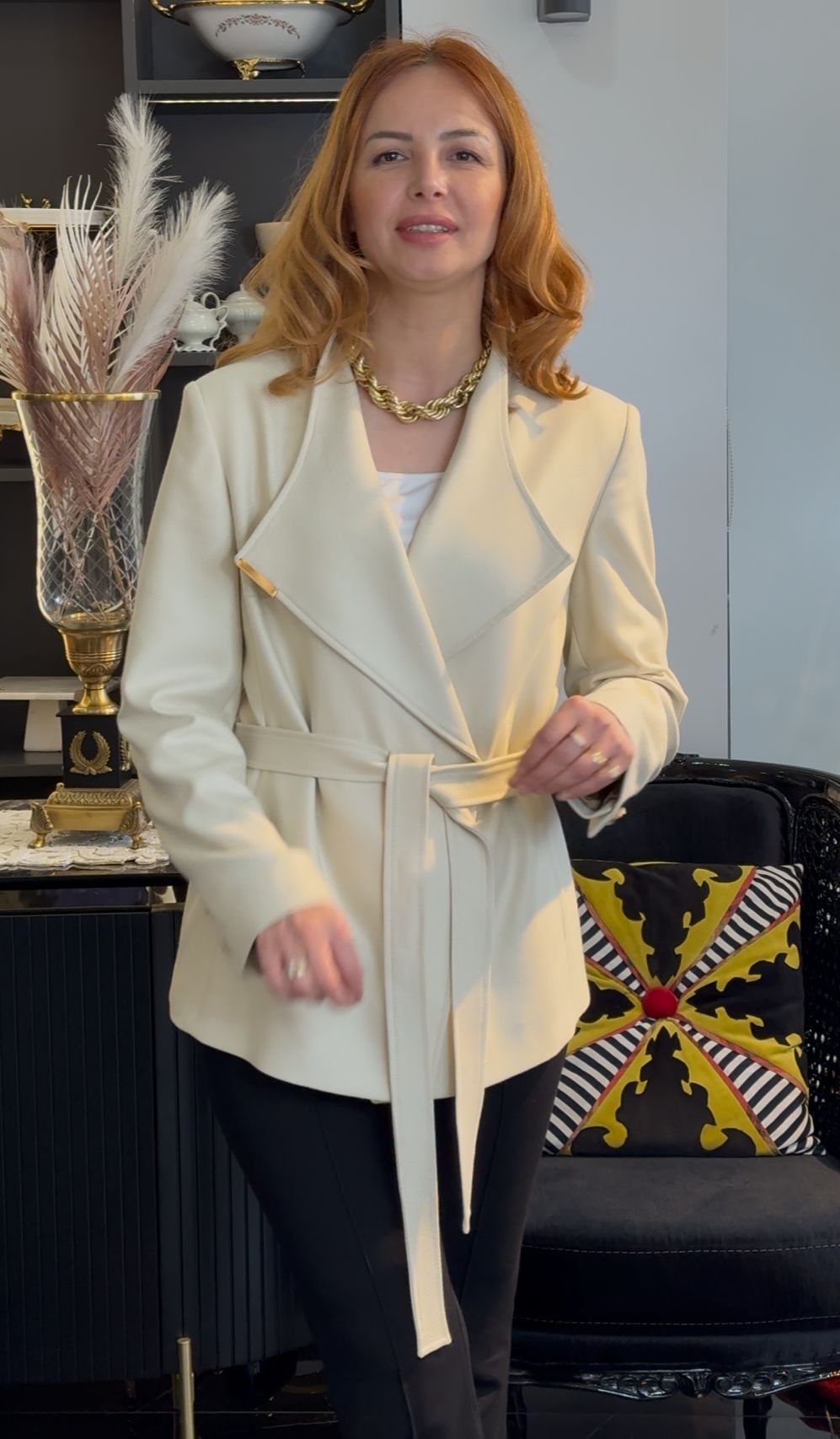 “Zarafetin En Yalın Hali: Kruvaze Kesim Krem Ceket”