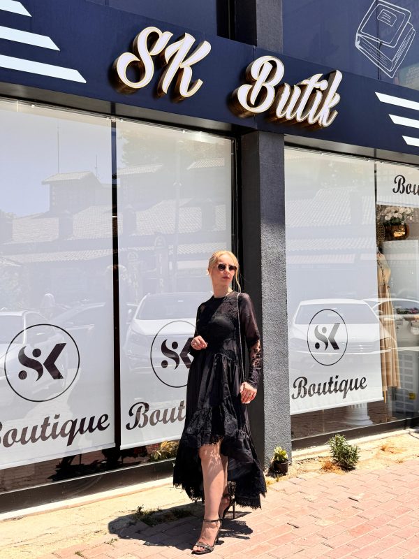 Siyahın en iddialı ve dramatik haliyle tanışın. Yüksek yaka ve uzun kollu fileli üst kısım, modern bir şıklık sunarken, volümlü, kat kat tül alt kısım hareketli ve göz kamaştırıcı bir silüet yaratıyor. Elbisenin gövdesindeki özenle işlenmiş, dokulu detaylar ise kalitesini ve benzersizliğini kanıtlıyor. Bu elbise, gücünü ve özgüvenini stilinde yansıtmak isteyen kadınlar için tasarlandı. Unutulmaz anlar için mükemmel seçim!